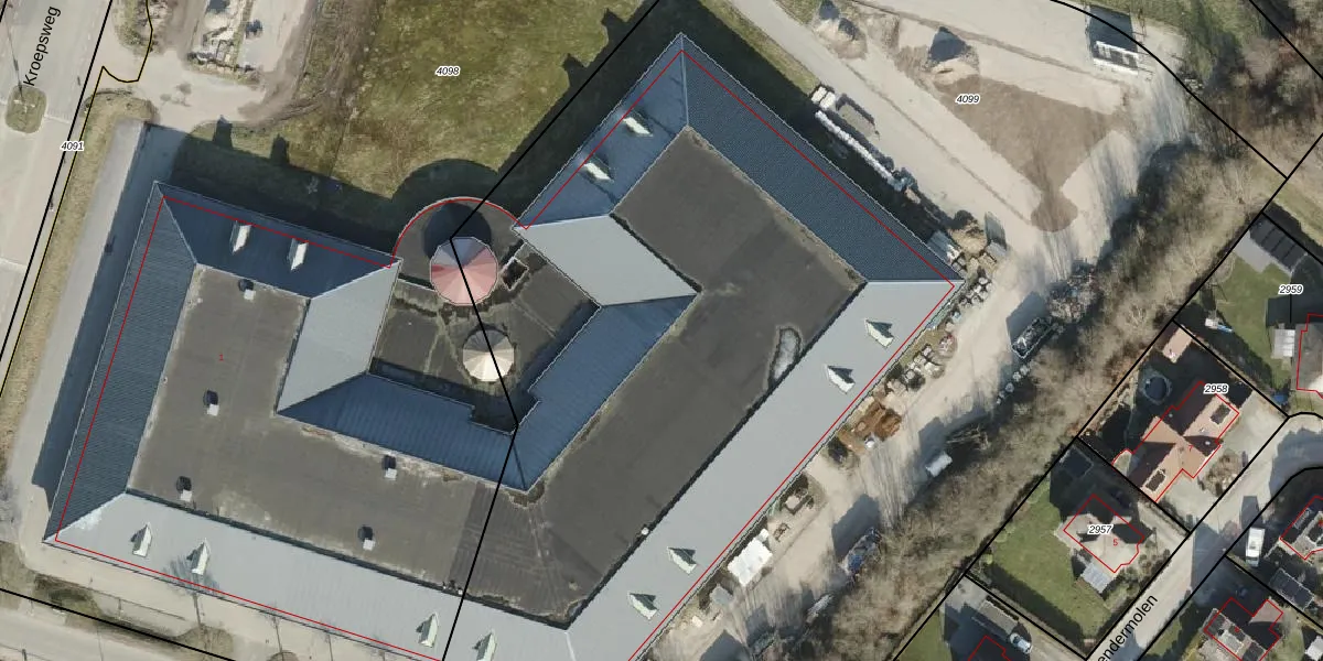 Het perceel waarop Kroepsweg 55 staat heeft een oppervlakte van 1,1 ha. Dit is een zeer groot perceel. De perceeloppervlakte wordt geregistreerd door het Kadaster. Gedetailleerde informatie over de maten van dit perceel kunt u vinden in het rapport Kadastrale kaart met maatvoering van Kroepsweg 55.