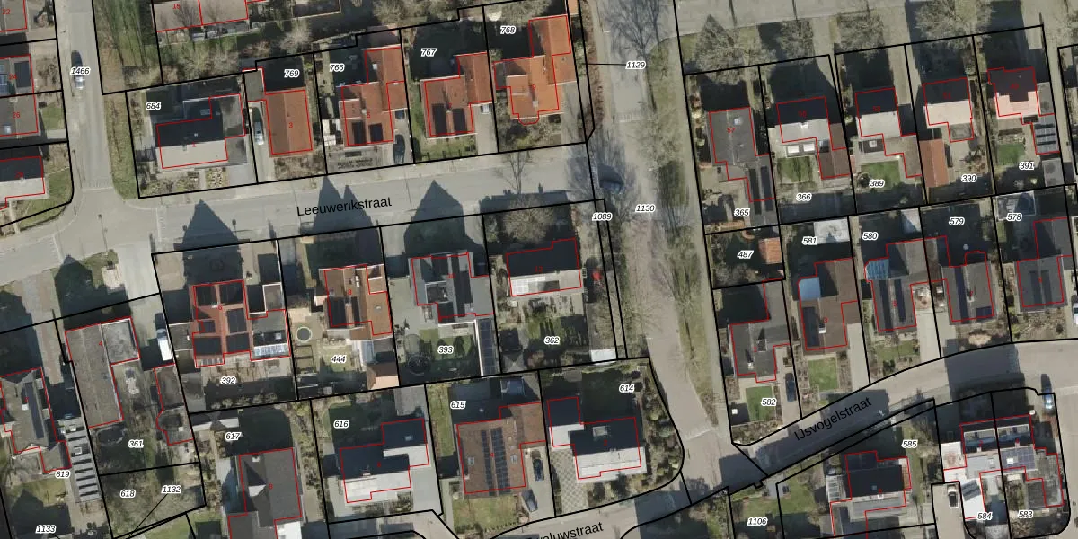 Het perceel waarop Leeuwerikstraat 12 staat heeft een oppervlakte van 630 m². Dit is een groot perceel. De perceeloppervlakte wordt geregistreerd door het Kadaster. Gedetailleerde informatie over de maten van dit perceel kunt u vinden in het rapport Kadastrale kaart met maatvoering van Leeuwerikstraat 12.