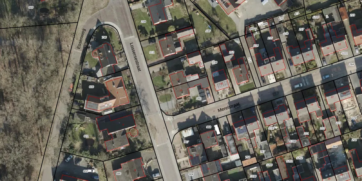 Lossersestraat 15 is gelegen op kadastraal perceel LSR00O282. Deze kadastrale aanduiding is uniek en wordt gebruikt door het Kadaster om eigendomsrechten en andere zakelijke rechten vast te leggen. Het perceel maakt onderdeel uit van de kadastrale gemeente Losser.
