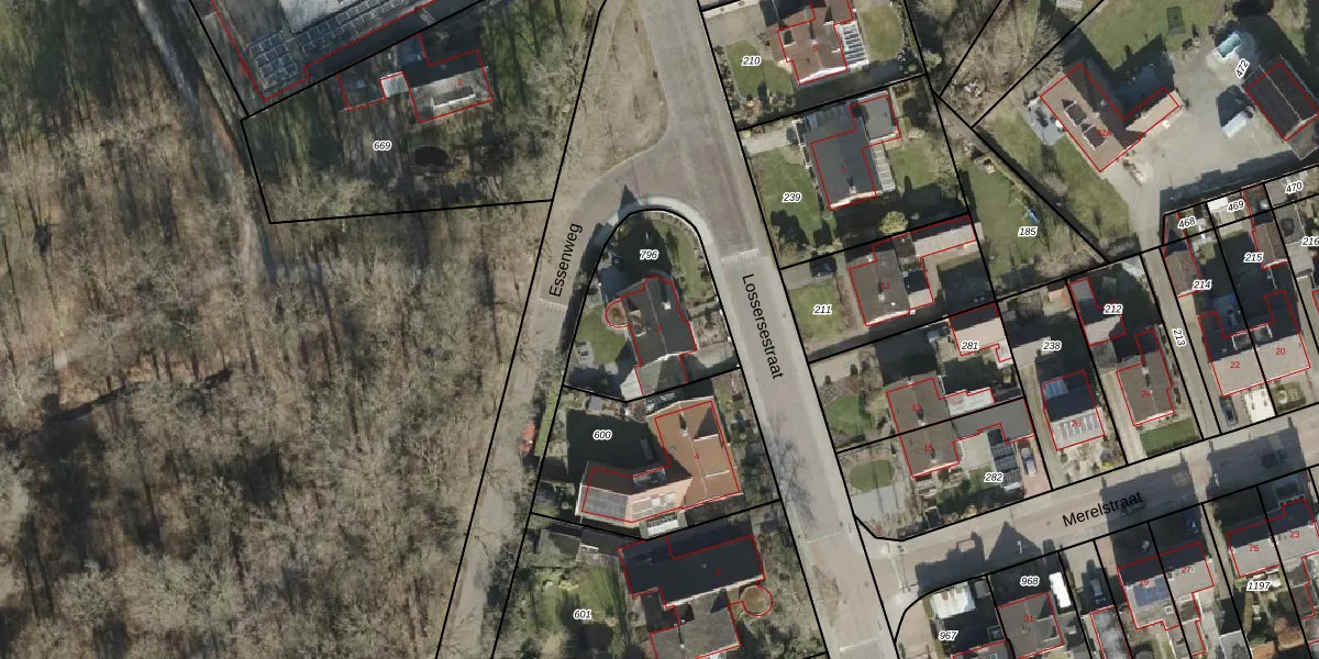 Het perceel waarop Lossersestraat 2 staat heeft een oppervlakte van 532 m². Dit is een groot perceel. De perceeloppervlakte wordt geregistreerd door het Kadaster. Gedetailleerde informatie over de maten van dit perceel kunt u vinden in het rapport Kadastrale kaart met maatvoering van Lossersestraat 2.