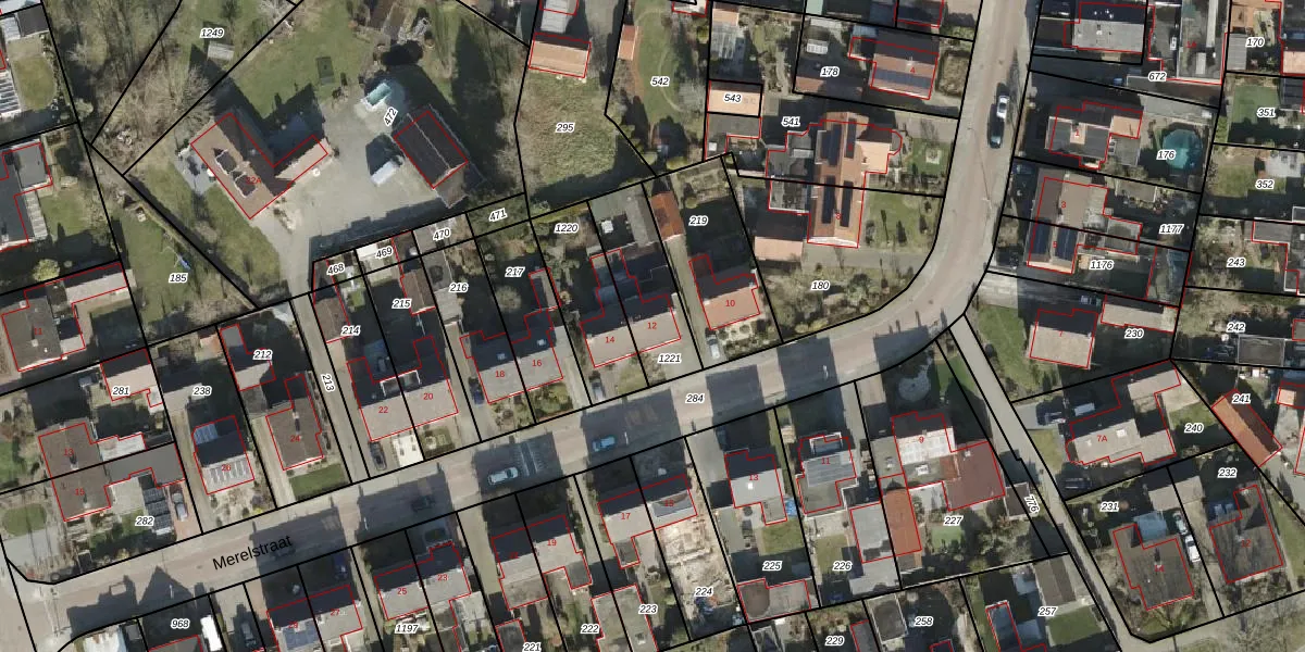Het perceel waarop Merelstraat 12 staat heeft een oppervlakte van 270 m². Dit is een middelgroot perceel. De perceeloppervlakte wordt geregistreerd door het Kadaster. Gedetailleerde informatie over de maten van dit perceel kunt u vinden in het rapport Kadastrale kaart met maatvoering van Merelstraat 12.
