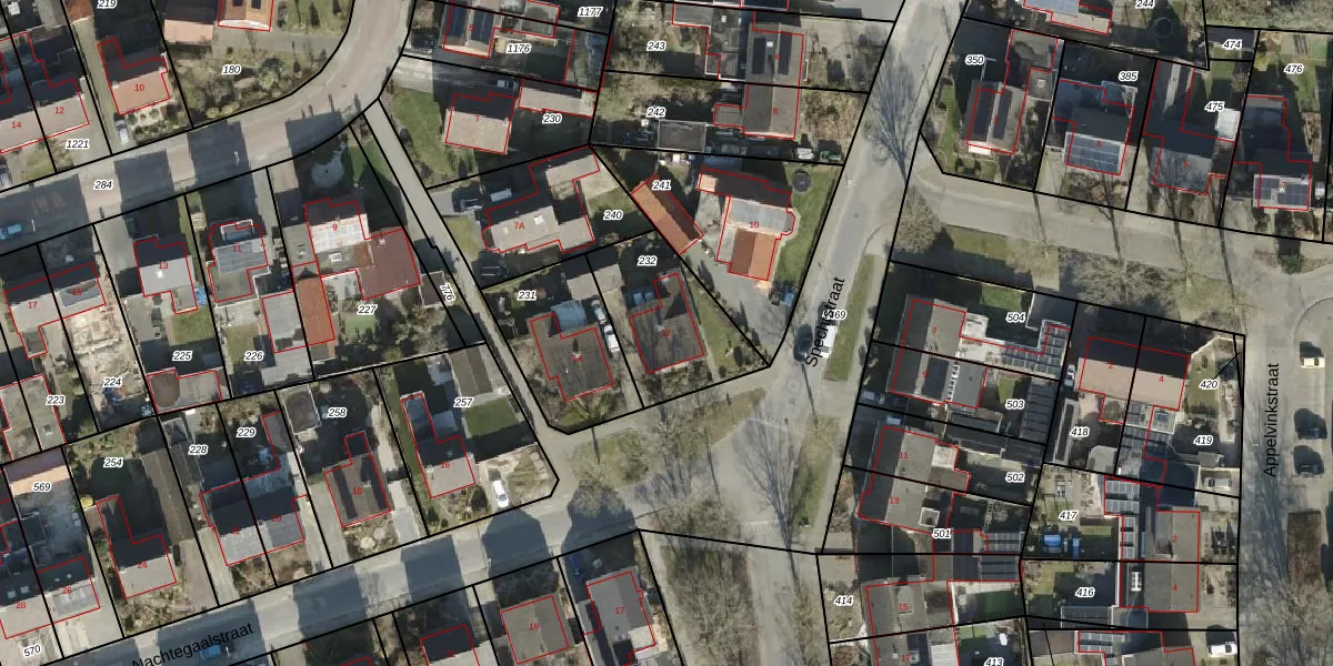 Het perceel waarop Nachtegaalstraat 12 staat heeft een oppervlakte van 390 m². Dit is een groot perceel. De perceeloppervlakte wordt geregistreerd door het Kadaster. Gedetailleerde informatie over de maten van dit perceel kunt u vinden in het rapport Kadastrale kaart met maatvoering van Nachtegaalstraat 12.