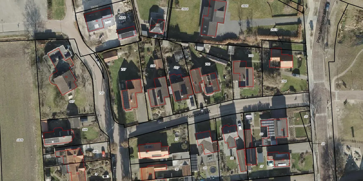 Het perceel waarop Nieuwstraat 4 staat heeft een oppervlakte van 510 m². Dit is een groot perceel. De perceeloppervlakte wordt geregistreerd door het Kadaster. Gedetailleerde informatie over de maten van dit perceel kunt u vinden in het rapport Kadastrale kaart met maatvoering van Nieuwstraat 4.