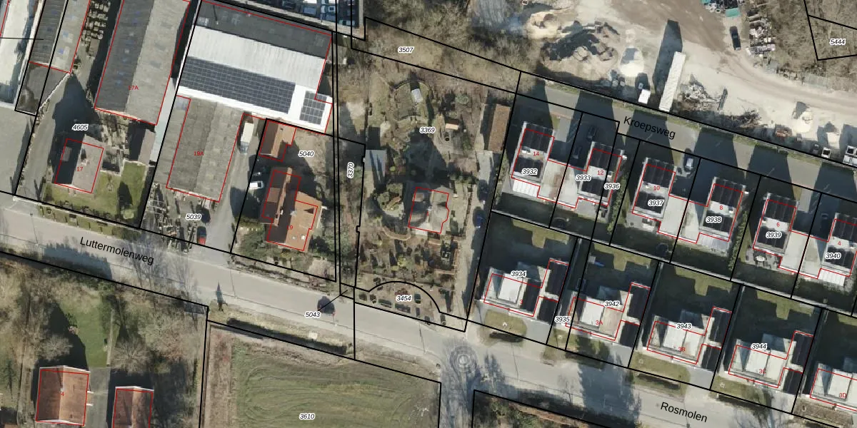 Het perceel waarop Rosmolen 1 staat heeft een oppervlakte van 1793 m². Dit is een zeer groot perceel. De perceeloppervlakte wordt geregistreerd door het Kadaster. Gedetailleerde informatie over de maten van dit perceel kunt u vinden in het rapport Kadastrale kaart met maatvoering van Rosmolen 1.