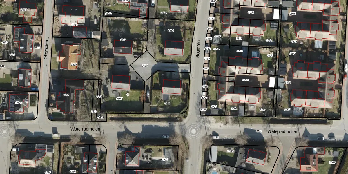 Het perceel waarop Rosmolen 35 staat heeft een oppervlakte van 596 m². Dit is een groot perceel. De perceeloppervlakte wordt geregistreerd door het Kadaster. Gedetailleerde informatie over de maten van dit perceel kunt u vinden in het rapport Kadastrale kaart met maatvoering van Rosmolen 35.