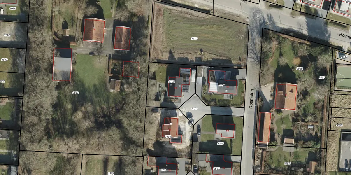 Het perceel waarop Rosmolen 63 staat heeft een oppervlakte van 648 m². Dit is een groot perceel. De perceeloppervlakte wordt geregistreerd door het Kadaster. Gedetailleerde informatie over de maten van dit perceel kunt u vinden in het rapport Kadastrale kaart met maatvoering van Rosmolen 63.