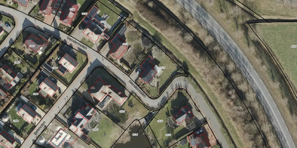Het perceel waarop Stendermolen 25 staat heeft een oppervlakte van 734 m². Dit is een groot perceel. De perceeloppervlakte wordt geregistreerd door het Kadaster. Gedetailleerde informatie over de maten van dit perceel kunt u vinden in het rapport Kadastrale kaart met maatvoering van Stendermolen 25.