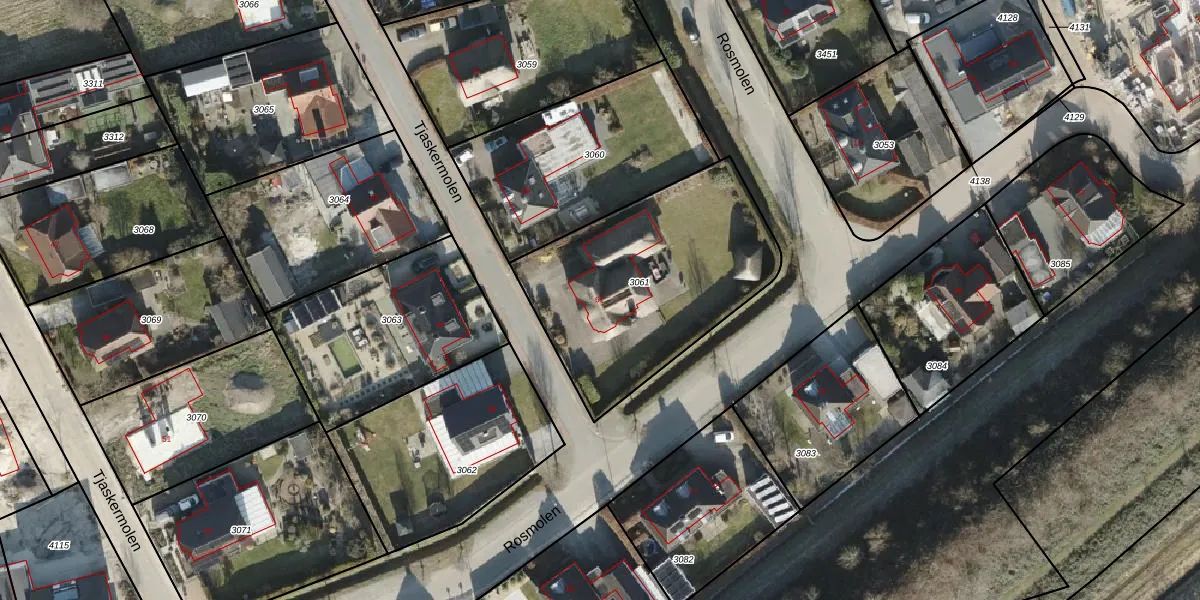 Het perceel waarop Tjaskermolen 61 staat heeft een oppervlakte van 1039 m². Dit is een zeer groot perceel. De perceeloppervlakte wordt geregistreerd door het Kadaster. Gedetailleerde informatie over de maten van dit perceel kunt u vinden in het rapport Kadastrale kaart met maatvoering van Tjaskermolen 61.