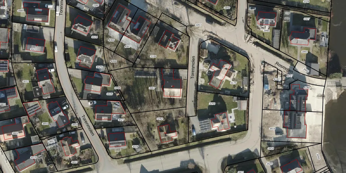 Het perceel waarop Torenmolen 48 staat heeft een oppervlakte van 954 m². Dit is een groot perceel. De perceeloppervlakte wordt geregistreerd door het Kadaster. Gedetailleerde informatie over de maten van dit perceel kunt u vinden in het rapport Kadastrale kaart met maatvoering van Torenmolen 48.