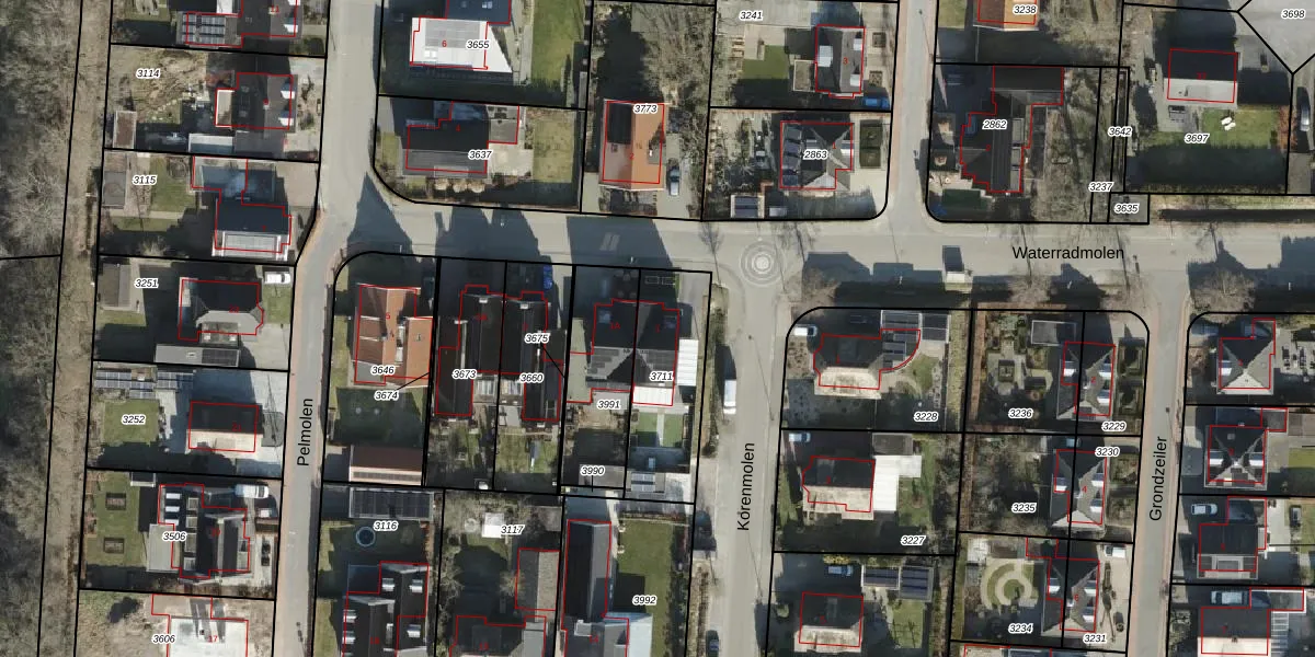 Het perceel waarop Waterradmolen 1 staat heeft een oppervlakte van 382 m². Dit is een groot perceel. De perceeloppervlakte wordt geregistreerd door het Kadaster. Gedetailleerde informatie over de maten van dit perceel kunt u vinden in het rapport Kadastrale kaart met maatvoering van Waterradmolen 1.