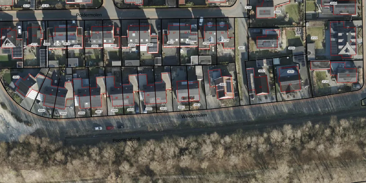 Het perceel waarop Weidemolen 22 staat heeft een oppervlakte van 222 m². Dit is een middelgroot perceel. De perceeloppervlakte wordt geregistreerd door het Kadaster. Gedetailleerde informatie over de maten van dit perceel kunt u vinden in het rapport Kadastrale kaart met maatvoering van Weidemolen 22.