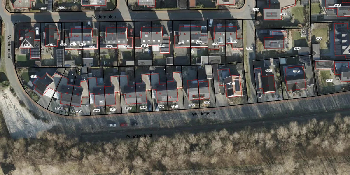 Het perceel waarop Weidemolen 24 staat heeft een oppervlakte van 232 m². Dit is een middelgroot perceel. De perceeloppervlakte wordt geregistreerd door het Kadaster. Gedetailleerde informatie over de maten van dit perceel kunt u vinden in het rapport Kadastrale kaart met maatvoering van Weidemolen 24.