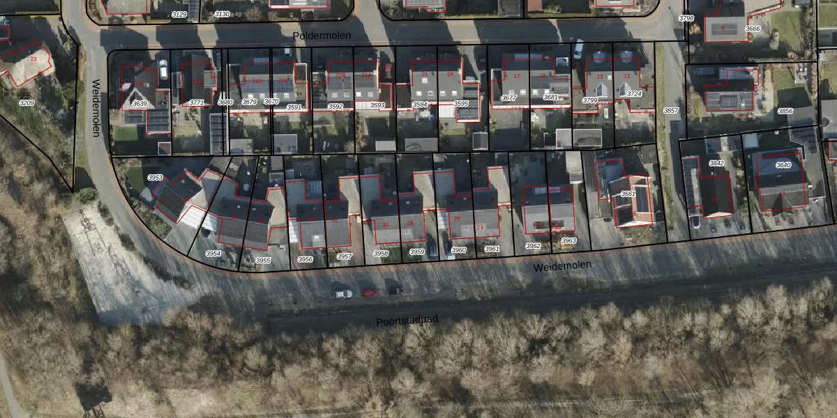 Het perceel waarop Weidemolen 28 staat heeft een oppervlakte van 233 m². Dit is een middelgroot perceel. De perceeloppervlakte wordt geregistreerd door het Kadaster. Gedetailleerde informatie over de maten van dit perceel kunt u vinden in het rapport Kadastrale kaart met maatvoering van Weidemolen 28.