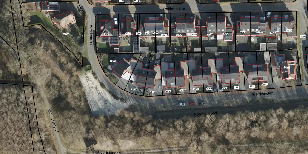 Het perceel waarop Weidemolen 36 staat heeft een oppervlakte van 256 m². Dit is een middelgroot perceel. De perceeloppervlakte wordt geregistreerd door het Kadaster. Gedetailleerde informatie over de maten van dit perceel kunt u vinden in het rapport Kadastrale kaart met maatvoering van Weidemolen 36.
