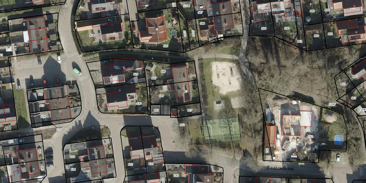 Het perceel waarop Zwaluwstraat 15 staat heeft een oppervlakte van 343 m². Dit is een groot perceel. De perceeloppervlakte wordt geregistreerd door het Kadaster. Gedetailleerde informatie over de maten van dit perceel kunt u vinden in het rapport Kadastrale kaart met maatvoering van Zwaluwstraat 15.