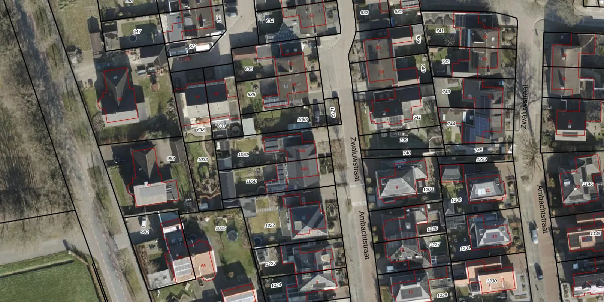 Het perceel waarop Zwaluwstraat 54-A staat heeft een oppervlakte van 389 m². Dit is een groot perceel. De perceeloppervlakte wordt geregistreerd door het Kadaster. Gedetailleerde informatie over de maten van dit perceel kunt u vinden in het rapport Kadastrale kaart met maatvoering van Zwaluwstraat 54-A.