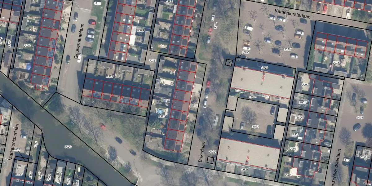 Het perceel waarop Bakerlaan 6 staat heeft een oppervlakte van 1370 m². Dit is een zeer groot perceel. De perceeloppervlakte wordt geregistreerd door het Kadaster. Gedetailleerde informatie over de maten van dit perceel kunt u vinden in het rapport Kadastrale kaart met maatvoering van Bakerlaan 6.