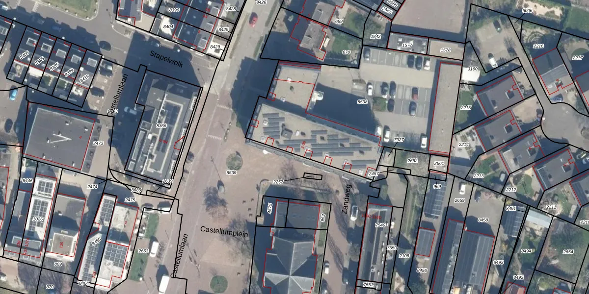 Het perceel waarop Castellumplein 11 staat heeft een oppervlakte van 2260 m². Dit is een zeer groot perceel. De perceeloppervlakte wordt geregistreerd door het Kadaster. Gedetailleerde informatie over de maten van dit perceel kunt u vinden in het rapport Kadastrale kaart met maatvoering van Castellumplein 11.