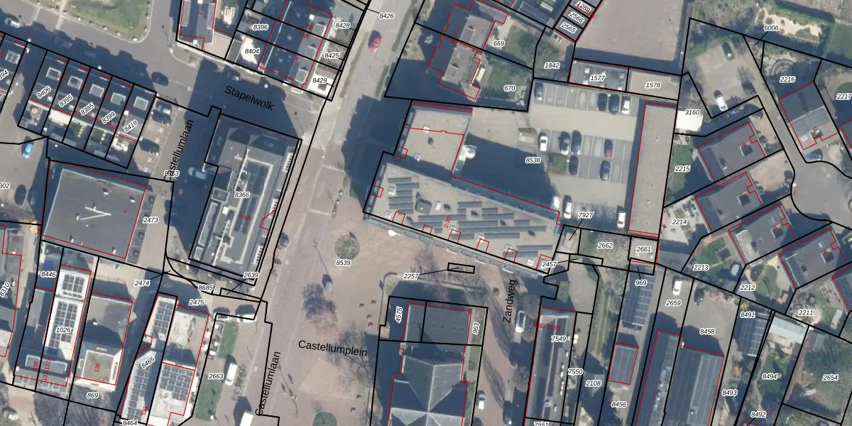 Het perceel waarop Castellumplein 20 staat heeft een oppervlakte van 2260 m². Dit is een zeer groot perceel. De perceeloppervlakte wordt geregistreerd door het Kadaster. Gedetailleerde informatie over de maten van dit perceel kunt u vinden in het rapport Kadastrale kaart met maatvoering van Castellumplein 20.