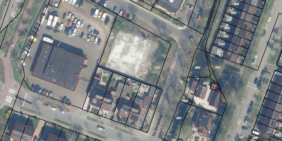 Het perceel waarop De Dompelaar 1-11 staat heeft een oppervlakte van 1598 m². Dit is een zeer groot perceel. De perceeloppervlakte wordt geregistreerd door het Kadaster. Gedetailleerde informatie over de maten van dit perceel kunt u vinden in het rapport Kadastrale kaart met maatvoering van De Dompelaar 1-11.