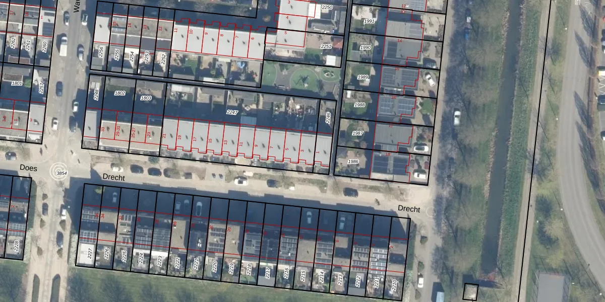 Het perceel waarop Drecht 3 staat heeft een oppervlakte van 1260 m². Dit is een zeer groot perceel. De perceeloppervlakte wordt geregistreerd door het Kadaster. Gedetailleerde informatie over de maten van dit perceel kunt u vinden in het rapport Kadastrale kaart met maatvoering van Drecht 3.