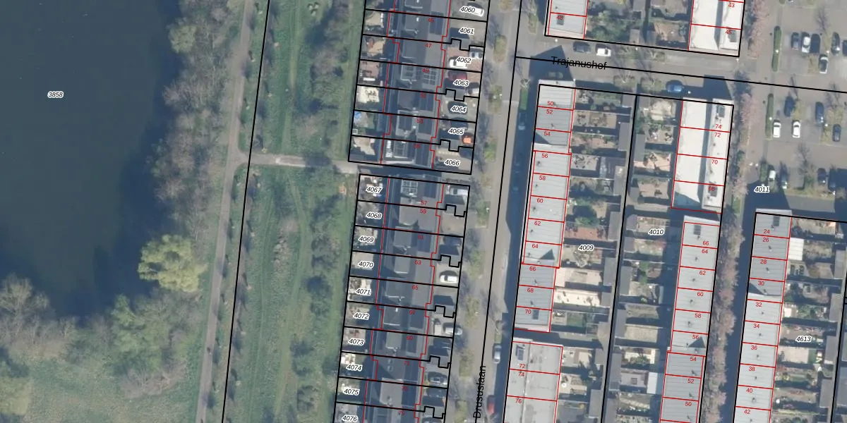 Het perceel waarop Drususlaan 59 staat heeft een oppervlakte van 156 m². Dit is een middelgroot perceel. De perceeloppervlakte wordt geregistreerd door het Kadaster. Gedetailleerde informatie over de maten van dit perceel kunt u vinden in het rapport Kadastrale kaart met maatvoering van Drususlaan 59.
