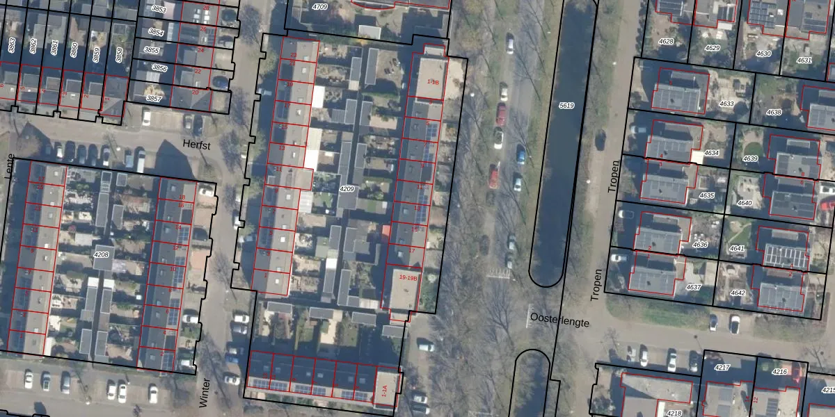 Het perceel waarop Evenaar 13 staat heeft een oppervlakte van 4055 m². Dit is een zeer groot perceel. De perceeloppervlakte wordt geregistreerd door het Kadaster. Gedetailleerde informatie over de maten van dit perceel kunt u vinden in het rapport Kadastrale kaart met maatvoering van Evenaar 13.