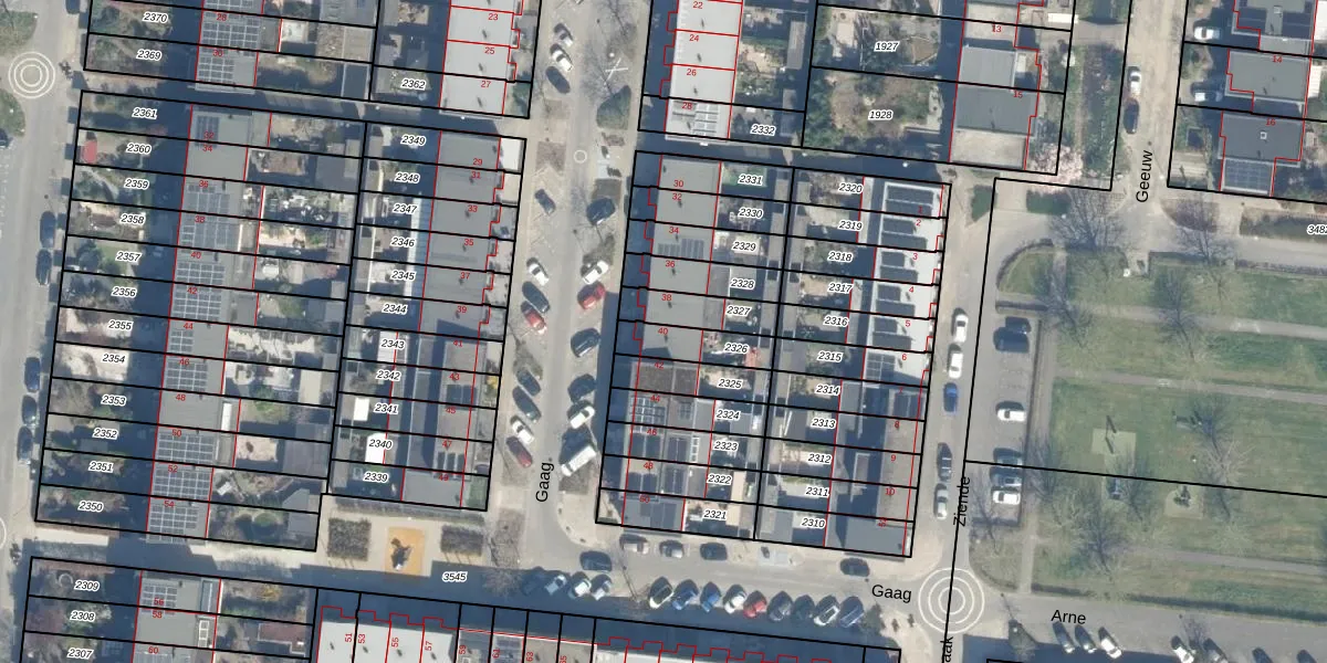 Het perceel waarop Gaag 40 staat heeft een oppervlakte van 122 m². Dit is een middelgroot perceel. De perceeloppervlakte wordt geregistreerd door het Kadaster. Gedetailleerde informatie over de maten van dit perceel kunt u vinden in het rapport Kadastrale kaart met maatvoering van Gaag 40.