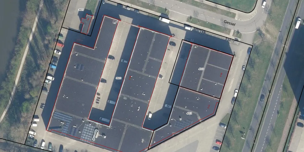 Het perceel waarop Gessel 21 staat heeft een oppervlakte van 1,0 ha. Dit is een zeer groot perceel. De perceeloppervlakte wordt geregistreerd door het Kadaster. Gedetailleerde informatie over de maten van dit perceel kunt u vinden in het rapport Kadastrale kaart met maatvoering van Gessel 21.