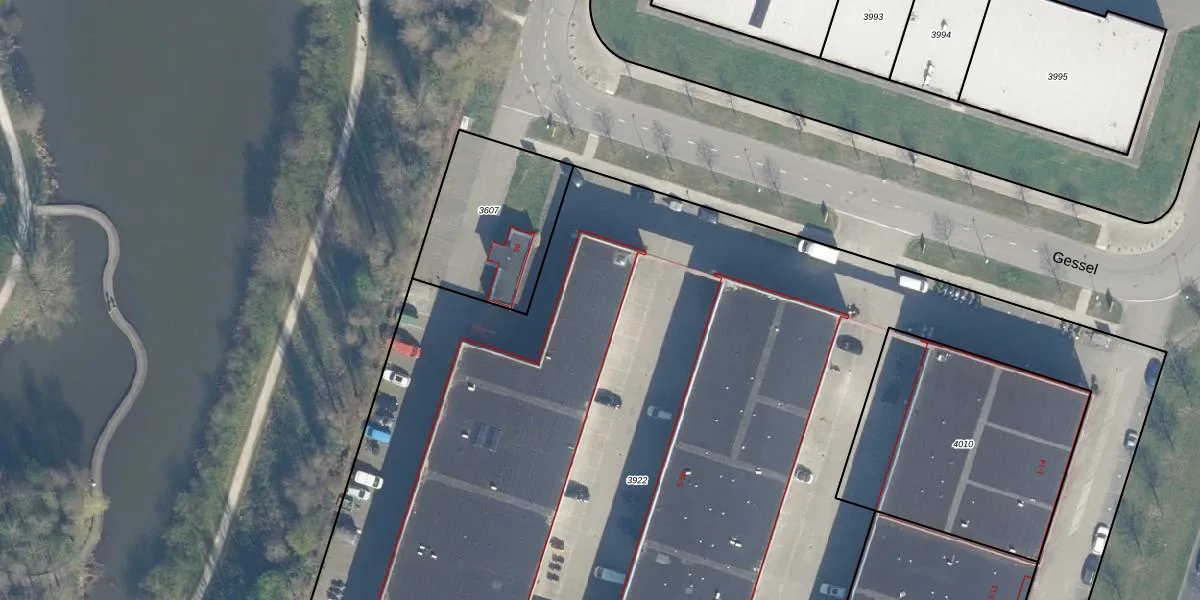 Het perceel waarop Gessel 41 staat heeft een oppervlakte van 1,0 ha. Dit is een zeer groot perceel. De perceeloppervlakte wordt geregistreerd door het Kadaster. Gedetailleerde informatie over de maten van dit perceel kunt u vinden in het rapport Kadastrale kaart met maatvoering van Gessel 41.