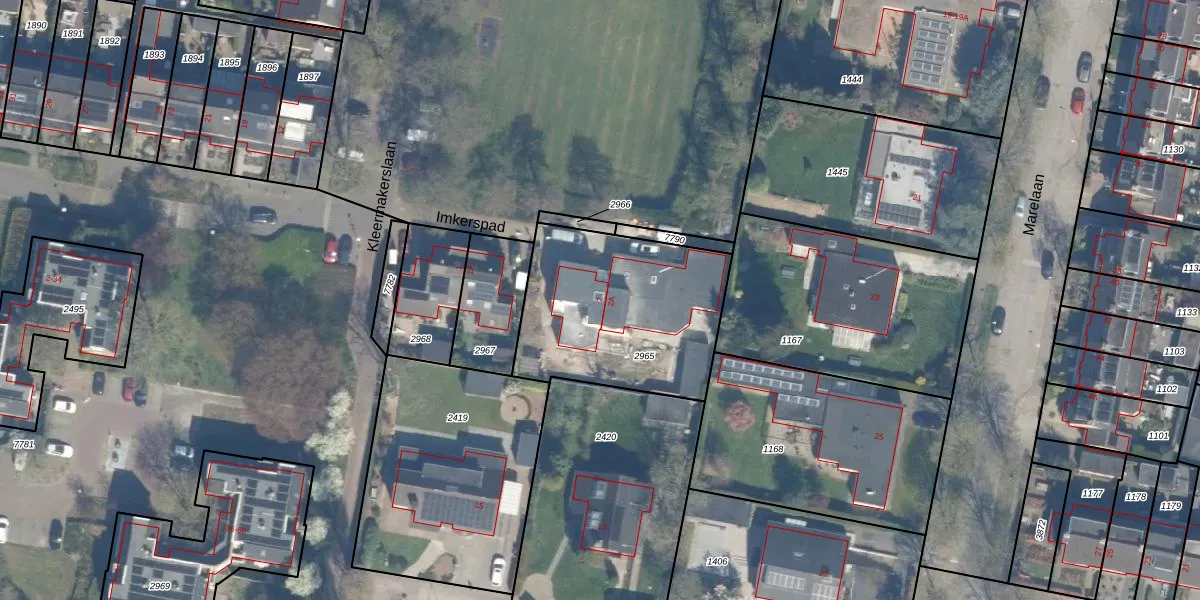 Het perceel waarop Imkerspad 2 staat heeft een oppervlakte van 806 m². Dit is een groot perceel. De perceeloppervlakte wordt geregistreerd door het Kadaster. Gedetailleerde informatie over de maten van dit perceel kunt u vinden in het rapport Kadastrale kaart met maatvoering van Imkerspad 2.