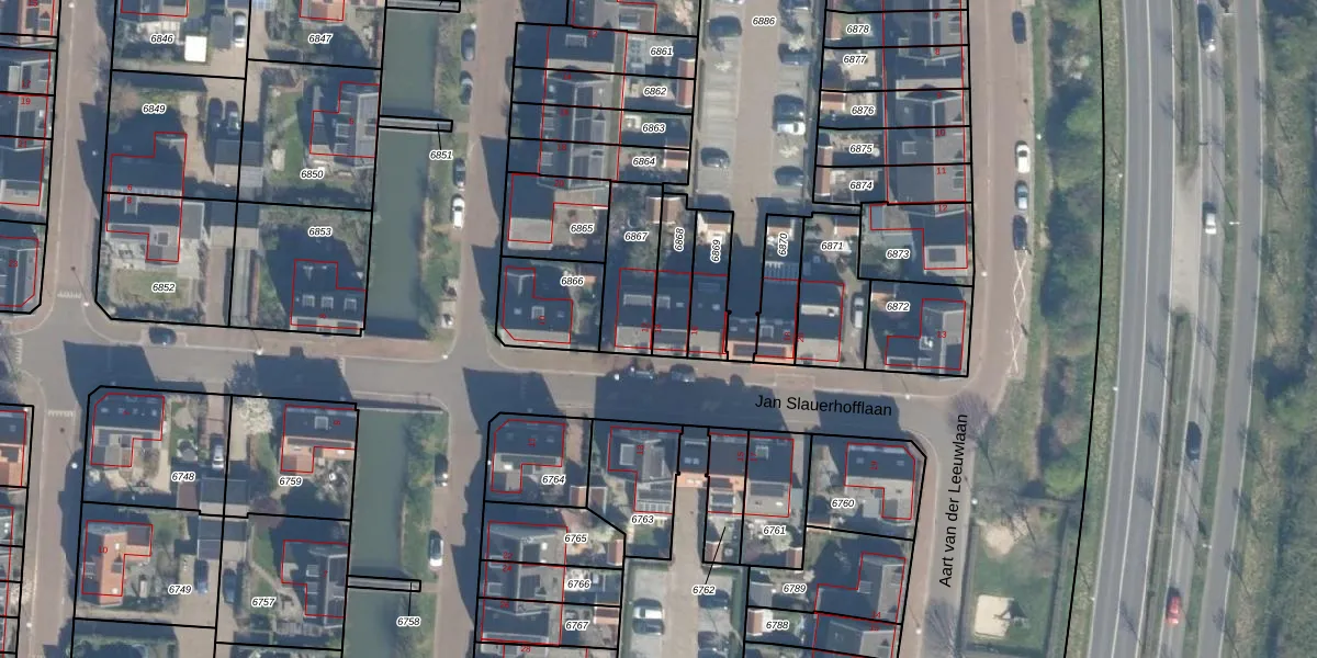 Gebruik de zoekbalk of klik op een perceel voor informatie over de adressen binnen dit perceel.