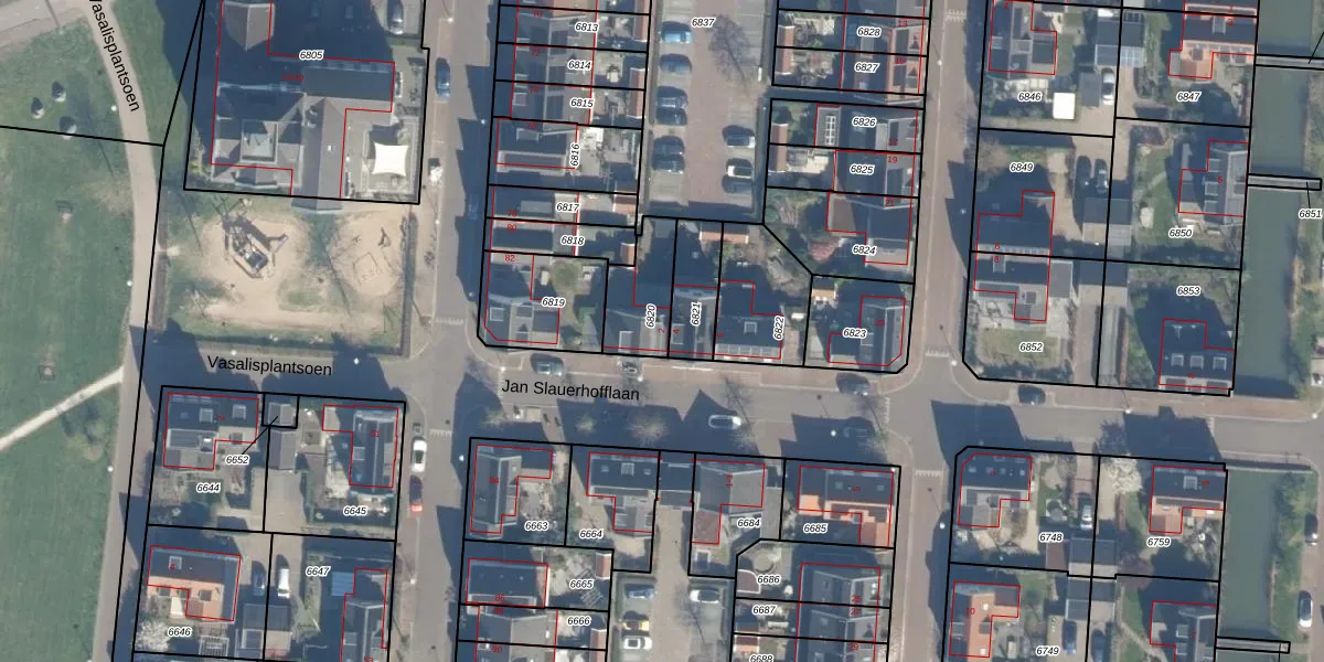 Gebruik de zoekbalk of klik op een perceel voor informatie over de adressen binnen dit perceel.