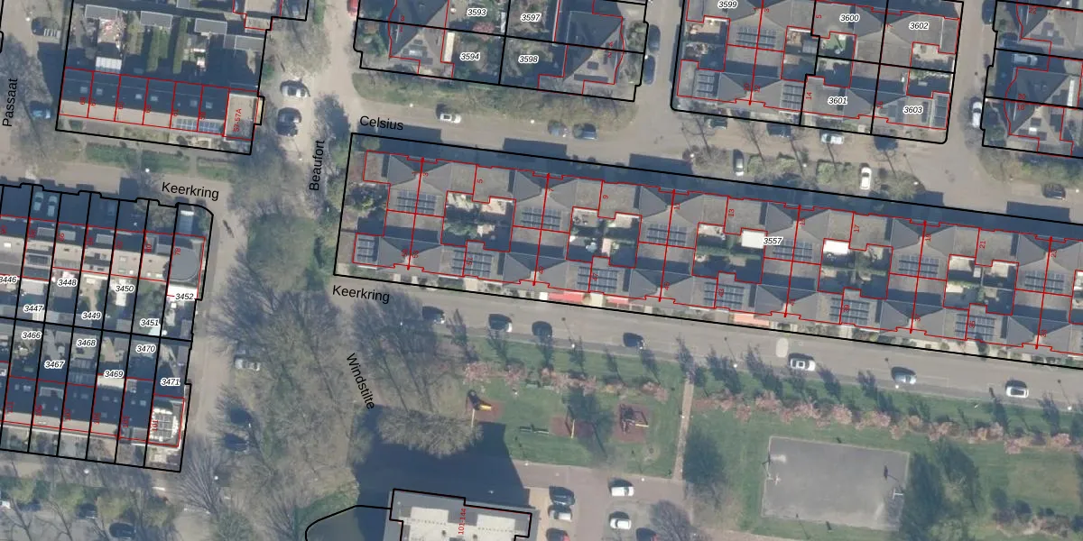 Het perceel waarop Keerkring 49 staat heeft een oppervlakte van 4400 m². Dit is een zeer groot perceel. De perceeloppervlakte wordt geregistreerd door het Kadaster. Gedetailleerde informatie over de maten van dit perceel kunt u vinden in het rapport Kadastrale kaart met maatvoering van Keerkring 49.