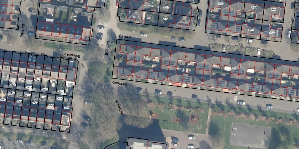 Het perceel waarop Keerkring 51 staat heeft een oppervlakte van 4400 m². Dit is een zeer groot perceel. De perceeloppervlakte wordt geregistreerd door het Kadaster. Gedetailleerde informatie over de maten van dit perceel kunt u vinden in het rapport Kadastrale kaart met maatvoering van Keerkring 51.