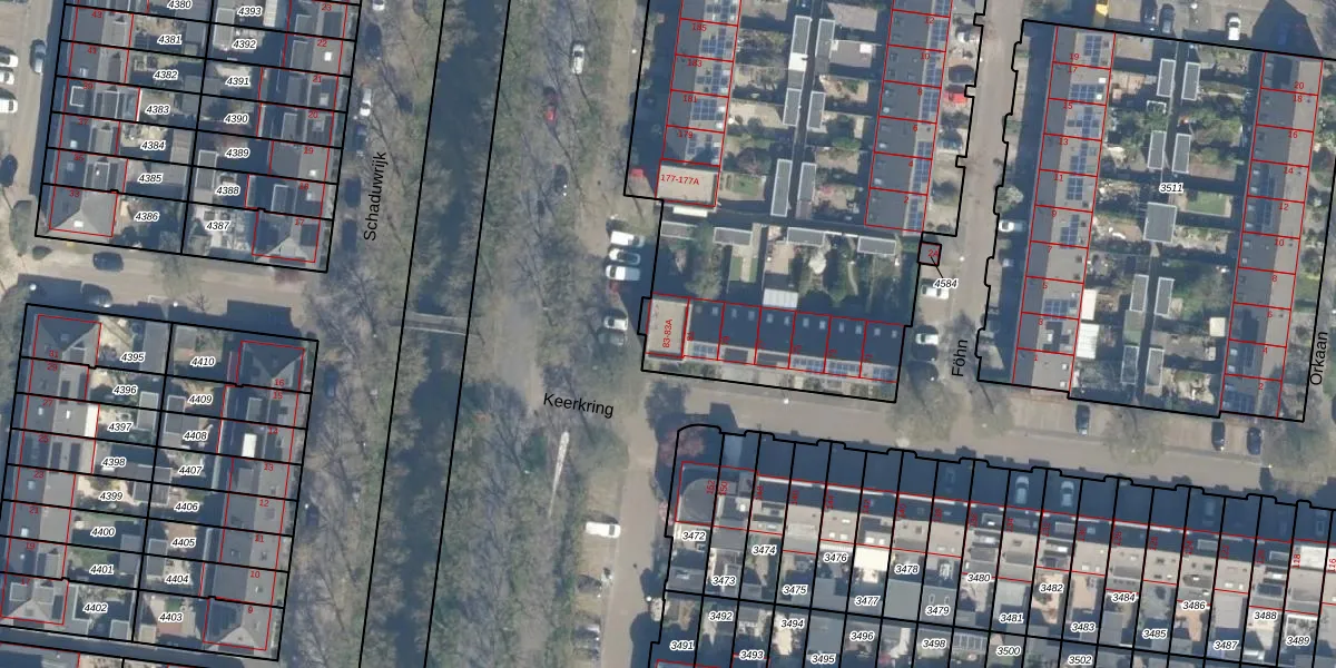 Het perceel waarop Keerkring 83-A staat heeft een oppervlakte van 5810 m². Dit is een zeer groot perceel. De perceeloppervlakte wordt geregistreerd door het Kadaster. Gedetailleerde informatie over de maten van dit perceel kunt u vinden in het rapport Kadastrale kaart met maatvoering van Keerkring 83-A.