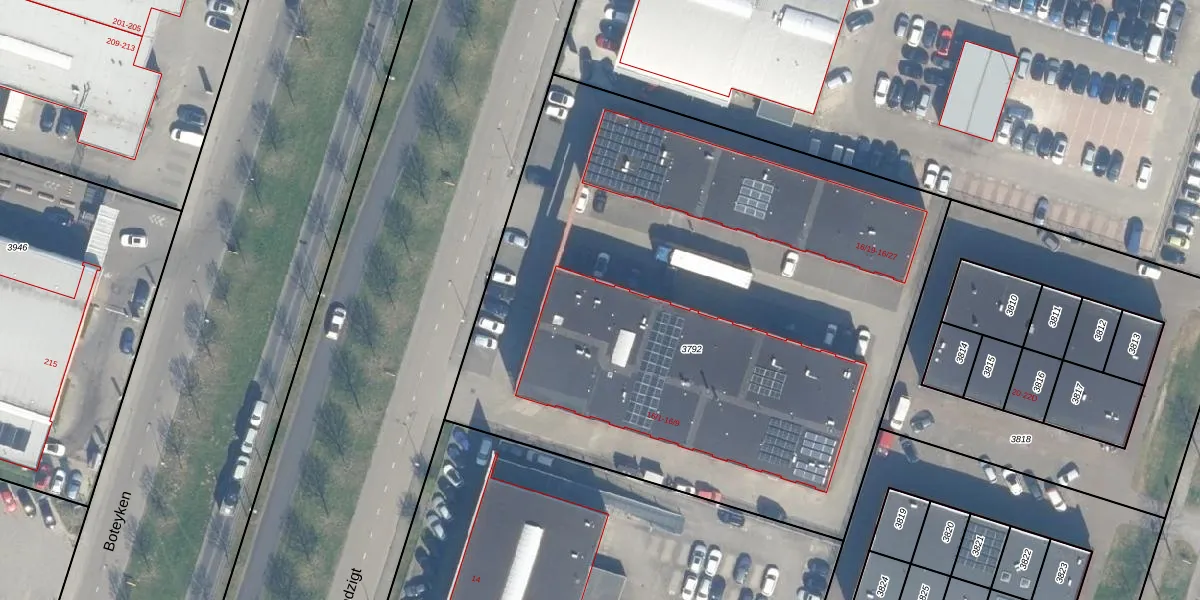 Het adres ligt op het perceel ODR02-A-3792, dat zich in de kadastrale gemeente Oudenrijn bevindt. Het perceel is met 4200 m² relatief groot. Het gemiddelde ligt in de kadastrale gemeente Oudenrijn op 1801,93 m². De grootste perceeloppervlakte in de kadastrale gemeente is 17,0 ha. De kleinste oppervlakte bedraagt 0 m². Op het perceel zijn 27 adressen aanwezig. De huidige grenzen van het perceel zijn digitaal in de Basisregistratie Kadaster (BRK) geregistreerd op 15-02-2007.