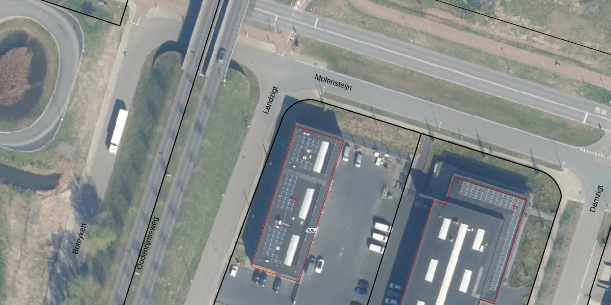 Het adres ligt op het perceel ODR02-A-4085, dat zich in de kadastrale gemeente Oudenrijn bevindt. Het perceel is met 3575 m² relatief groot. Het gemiddelde ligt in de kadastrale gemeente Oudenrijn op 1801,93 m². Het kleinste perceel in de kadastrale gemeente is 0 m² groot. De grootste perceeloppervlakte is 17,0 ha. Er zijn 3 adressen aanwezig op het perceel. In de Basisregistratie Kadaster (BRK) werden de grenzen van het perceel geregistreerd op 10-02-2016.