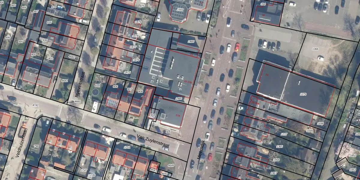 Het perceel waarop Meerndijk 17 staat heeft een oppervlakte van 907 m². Dit is een groot perceel. De perceeloppervlakte wordt geregistreerd door het Kadaster. Gedetailleerde informatie over de maten van dit perceel kunt u vinden in het rapport Kadastrale kaart met maatvoering van Meerndijk 17.