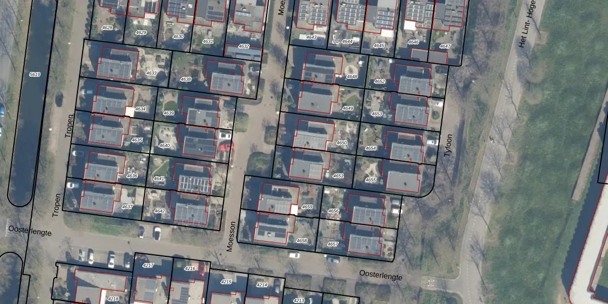 Het perceel waarop Moesson 5 staat heeft een oppervlakte van 295 m². Dit is een middelgroot perceel. De perceeloppervlakte wordt geregistreerd door het Kadaster. Gedetailleerde informatie over de maten van dit perceel kunt u vinden in het rapport Kadastrale kaart met maatvoering van Moesson 5.