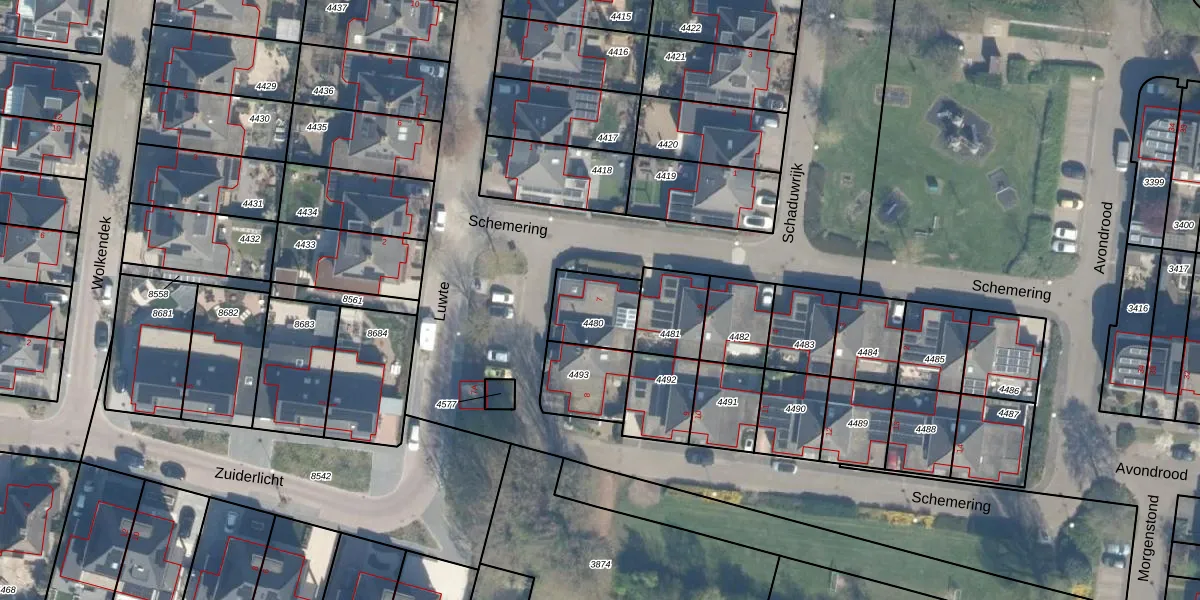 Het perceel waarop Schemering 7 staat heeft een oppervlakte van 172 m². Dit is een middelgroot perceel. De perceeloppervlakte wordt geregistreerd door het Kadaster. Gedetailleerde informatie over de maten van dit perceel kunt u vinden in het rapport Kadastrale kaart met maatvoering van Schemering 7.