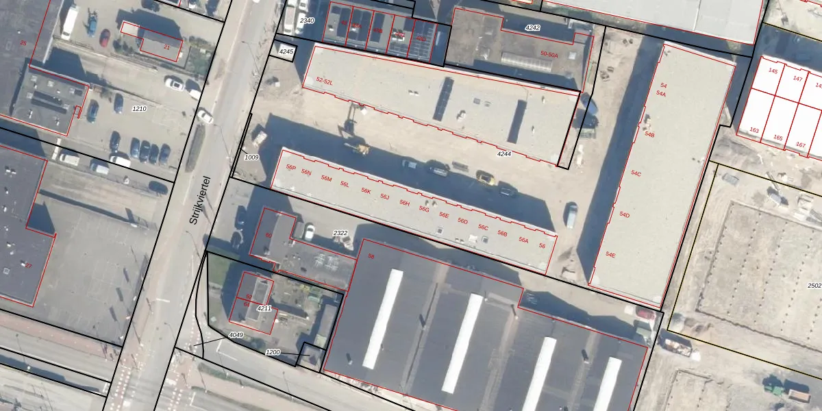 Het perceel waarop Strijkviertel 56-G staat heeft een oppervlakte van 5219 m². Dit is een zeer groot perceel. De perceeloppervlakte wordt geregistreerd door het Kadaster. Gedetailleerde informatie over de maten van dit perceel kunt u vinden in het rapport Kadastrale kaart met maatvoering van Strijkviertel 56-G.