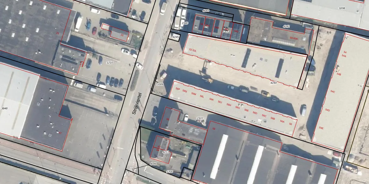 Het perceel waarop Strijkviertel 56-N staat heeft een oppervlakte van 5219 m². Dit is een zeer groot perceel. De perceeloppervlakte wordt geregistreerd door het Kadaster. Gedetailleerde informatie over de maten van dit perceel kunt u vinden in het rapport Kadastrale kaart met maatvoering van Strijkviertel 56-N.