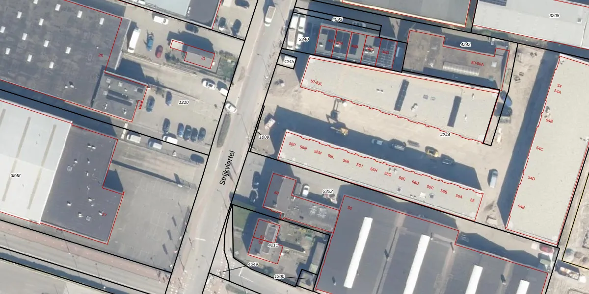 Het perceel waarop Strijkviertel 56-P staat heeft een oppervlakte van 5219 m². Dit is een zeer groot perceel. De perceeloppervlakte wordt geregistreerd door het Kadaster. Gedetailleerde informatie over de maten van dit perceel kunt u vinden in het rapport Kadastrale kaart met maatvoering van Strijkviertel 56-P.