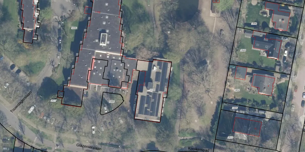 Touwslagerslaan 1-3 is gelegen op kadastraal perceel VTN00F3144. Deze kadastrale aanduiding is uniek en wordt gebruikt door het Kadaster om eigendomsrechten en andere zakelijke rechten vast te leggen. Het perceel maakt onderdeel uit van de kadastrale gemeente Vleuten.