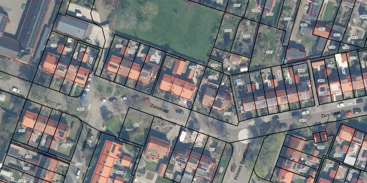 Zonstraat 13 is gelegen op kadastraal perceel ODR02A3456. Deze kadastrale aanduiding is uniek en wordt gebruikt door het Kadaster om eigendomsrechten en andere zakelijke rechten vast te leggen. Het perceel maakt onderdeel uit van de kadastrale gemeente Oudenrijn.