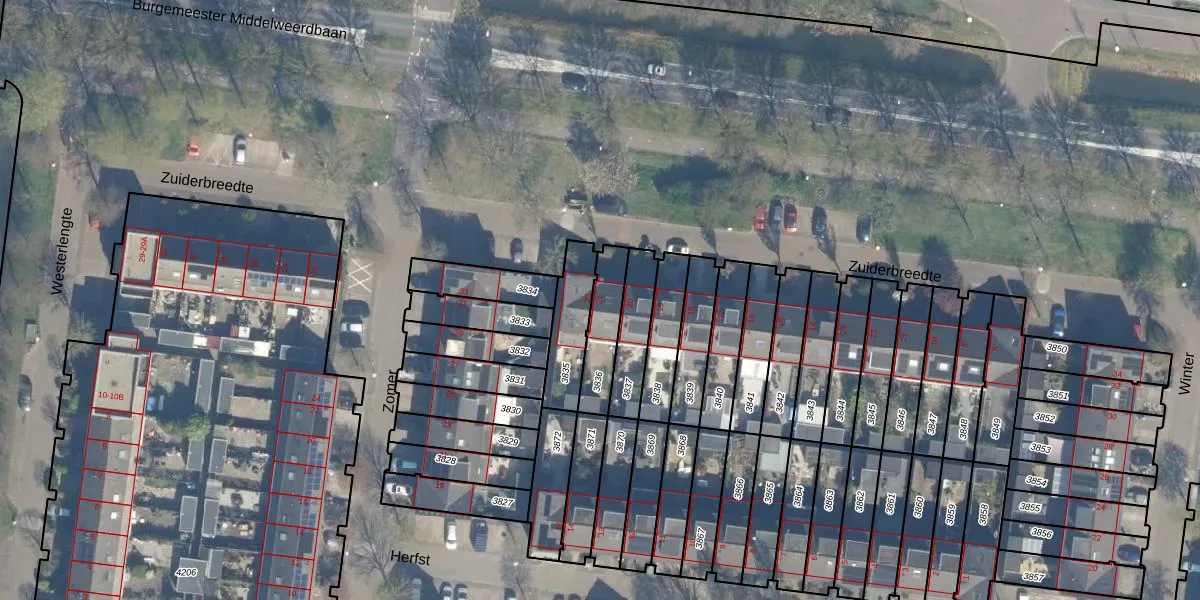 Gebruik de zoekbalk of klik op een perceel voor informatie over de adressen binnen dit perceel.