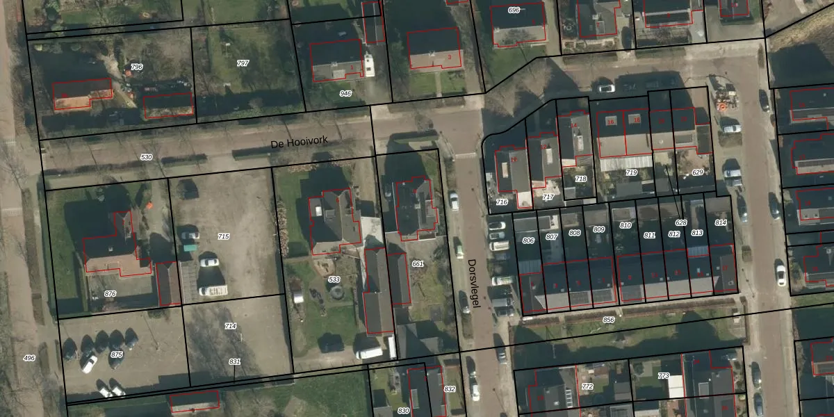 Het perceel waarop De Hooivork 8 staat heeft een oppervlakte van 737 m². Dit is een groot perceel. De perceeloppervlakte wordt geregistreerd door het Kadaster. Gedetailleerde informatie over de maten van dit perceel kunt u vinden in het rapport Kadastrale kaart met maatvoering van De Hooivork 8.