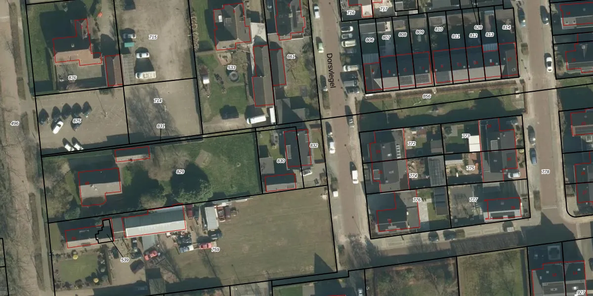 Gebruik de zoekbalk of klik op een perceel voor informatie over de adressen binnen dit perceel.
