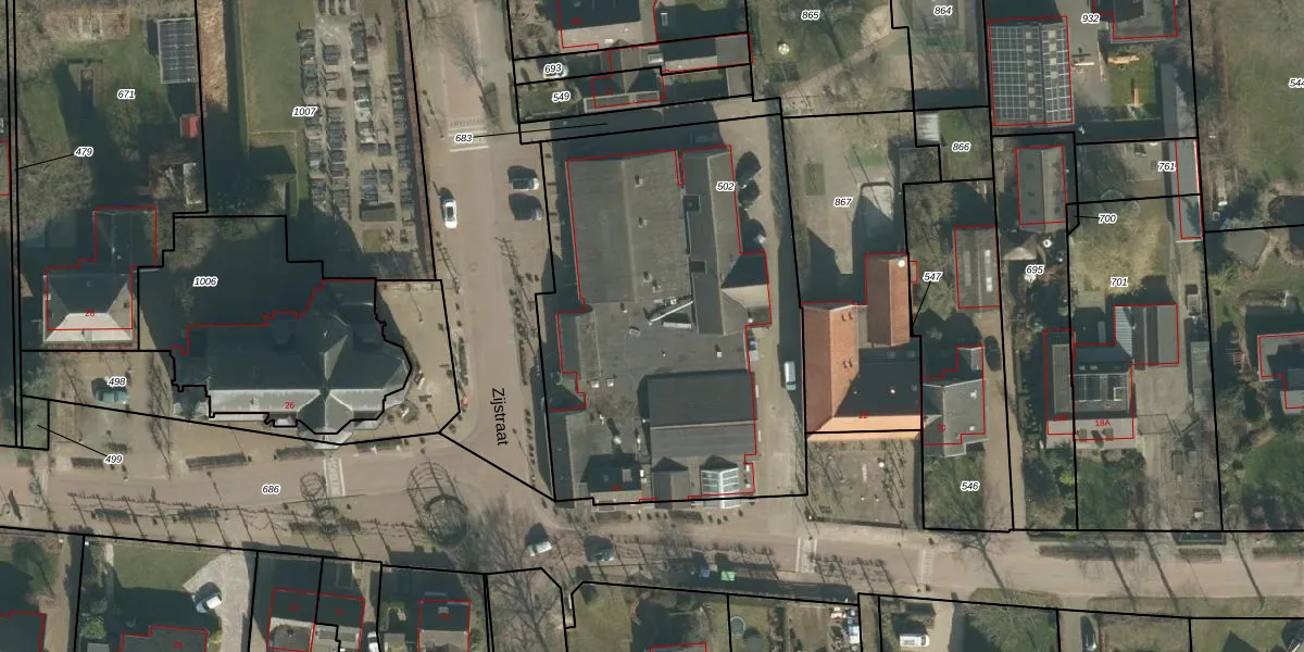 Het perceel waarop Middelstraat 24 staat heeft een oppervlakte van 2225 m². Dit is een zeer groot perceel. De perceeloppervlakte wordt geregistreerd door het Kadaster. Gedetailleerde informatie over de maten van dit perceel kunt u vinden in het rapport Kadastrale kaart met maatvoering van Middelstraat 24.